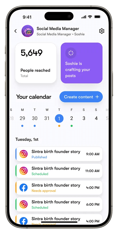 Social media tools are easy to buy, but hard to keep up with. Soshie is different. She’s built to operate independently, make smart decisions, and keep things moving without constant input from your team.