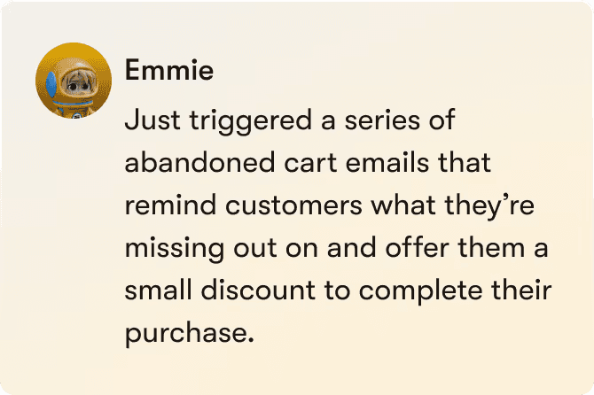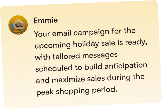 Email tools are easy to buy, but hard to keep consistent. Emmie is different. She’s built to operate independently, make smart decisions, and keep email marketing moving without constant input from your team.