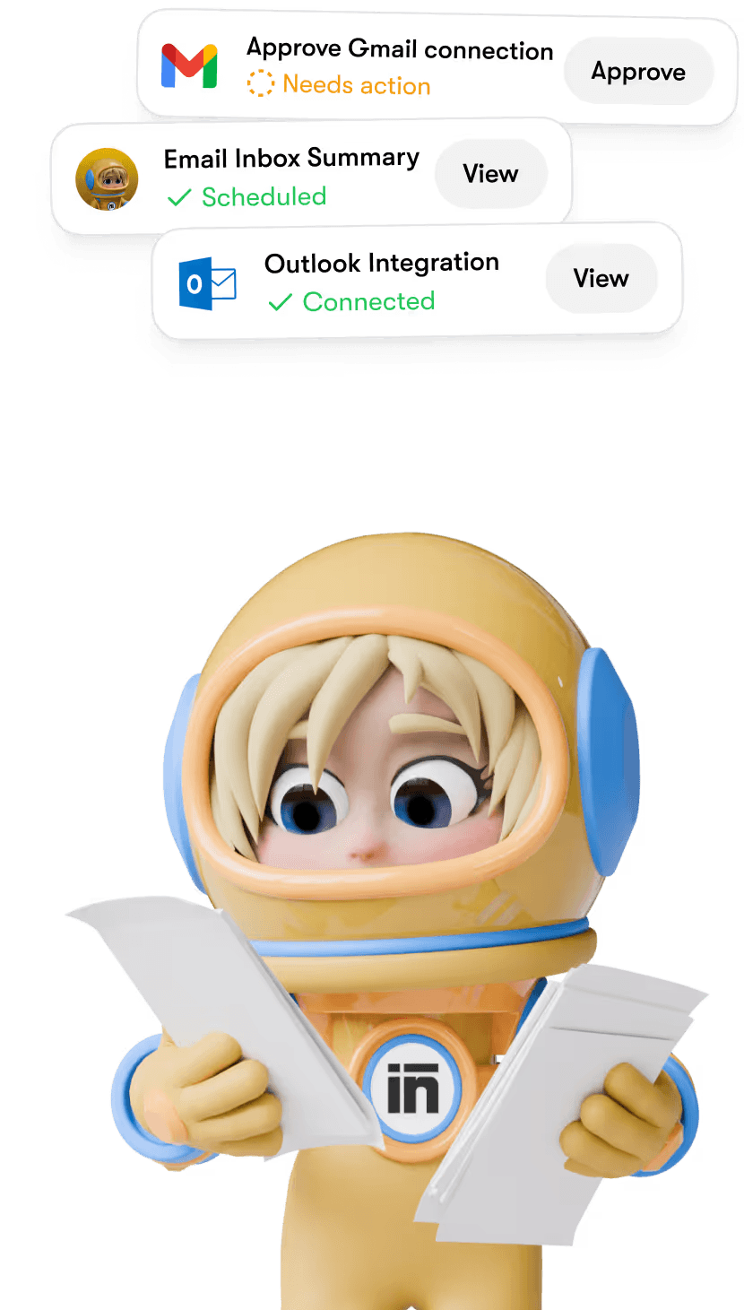 Ask and it’s underway - any hour. Emmie drafts, plans, and prepares without hand-holding.